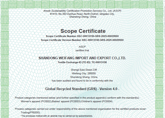 公司自營(yíng)和代理服裝、食品、五金、化工、機(jī)電等各類(lèi)商品及技術(shù)的進(jìn)出口業(yè)務(wù),公司有專(zhuān)門(mén)的生產(chǎn)、加工基地,并通過(guò)了Oeko - Tex Standard 100、GRS、OCS、RCS、USCTP等多項(xiàng)認(rèn)證,可以按客戶(hù)要求設(shè)計(jì)生產(chǎn),同時(shí)承辦中外合資經(jīng)營(yíng)、合作生產(chǎn)、開(kāi)展“三來(lái)一補(bǔ)”以及技術(shù)輸出、易貨、邊境貿(mào)易等業(yè)務(wù)。公司產(chǎn)品出口到日本、法國(guó)、俄羅斯等50多個(gè)國(guó)家或地區(qū)。